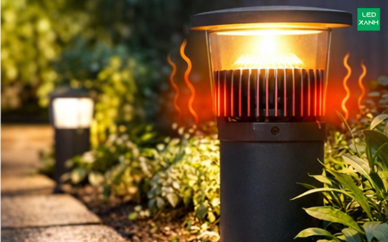 Cách khắc phục: Việc tính toán tản nhiệt đèn sân vườn cần được thực hiện nghiêm túc ngay từ khâu chọn mẫu. Hãy ưu tiên các sản phẩm sử dụng vật liệu nhôm đúc nguyên khối có độ tinh khiết cao, được thiết kế với cấu trúc vây tản nhiệt sâu và phân bổ khí động học để tối đa hóa hiệu ứng đối lưu.