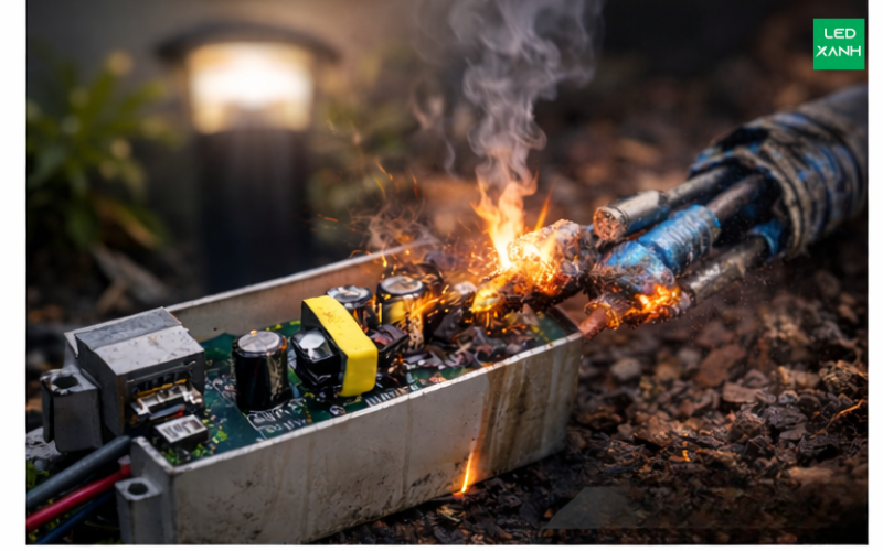 Việc sử dụng các bộ nguồn rẻ tiền, vốn chỉ được thiết kế cho môi trường trong nhà (Indoor), là nguyên nhân trực tiếp dẫn đến hiện tượng đèn nhấp nháy, nổ tụ điện hoặc thậm chí cháy bảng mạch. Đặc biệt, một sai lầm khá phổ biến của người dùng là chỉ chú ý đến chỉ số chống nước và bụi (IP) của đèn mà bỏ qua tiêu chuẩn này ở bộ nguồn.