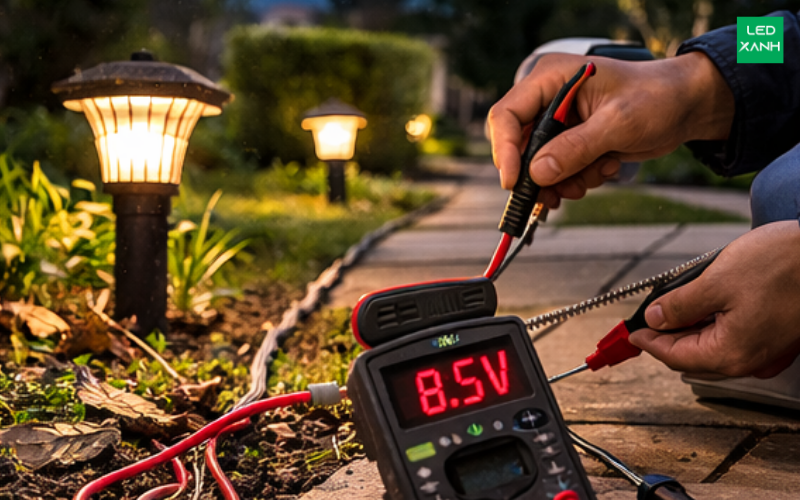 Hệ thống thiết kế chiếu sáng sân vườn chuyên nghiệp hiện nay thường ứng dụng mạng lưới điện áp thấp 12V hoặc 24V DC nhằm loại trừ nguy cơ giật điện gây chết người trong môi trường ẩm ướt. Tuy nhiên, việc vận hành ở điện áp thấp lại làm phát sinh một bài toán vật lý hóc búa: Sụt áp trên đường dây.
