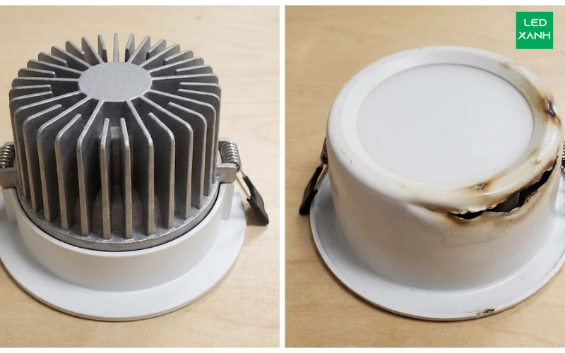 Vật liệu kém chất lượng: Nhiều nhà sản xuất sử dụng nhôm pha tạp chất, nhôm mỏng hoặc thậm chí là nhựa kém chất lượng để tản nhiệt. Điều này dẫn đến hiện tượng "om nhiệt" tại điểm nối P-N của Chip LED.