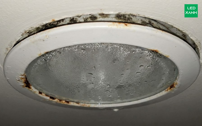 Việc sử dụng đèn âm trần có chỉ số IP thấp (IP20 - chỉ chống bụi kích thước lớn) cho các khu vực có độ ẩm cao như phòng tắm, mái hiên, spa là sai lầm kỹ thuật phổ biến. Hơi ẩm xâm nhập vào bên trong đèn sẽ gây oxy hóa mạch in (PCB) và các chân linh kiện, dẫn đến rò rỉ điện và hỏng mạch điều khiển.
