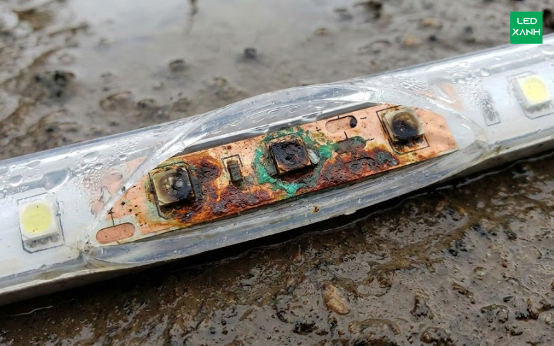 Một hiện tượng ít người biết đến là "hiện tượng mao dẫn". Khi dây LED hoạt động, nó sinh nhiệt làm không khí bên trong giãn nở và thoát ra ngoài qua các khe hở cực nhỏ. Khi tắt đèn, nhiệt độ giảm đột ngột tạo ra áp suất âm (chân không), hút ngược hơi ẩm từ môi trường vào bên trong dây. Hơi ẩm tích tụ lâu ngày làm oxy hóa mạch đồng và chân chip LED, gây rỉ sét và chập mạch.
