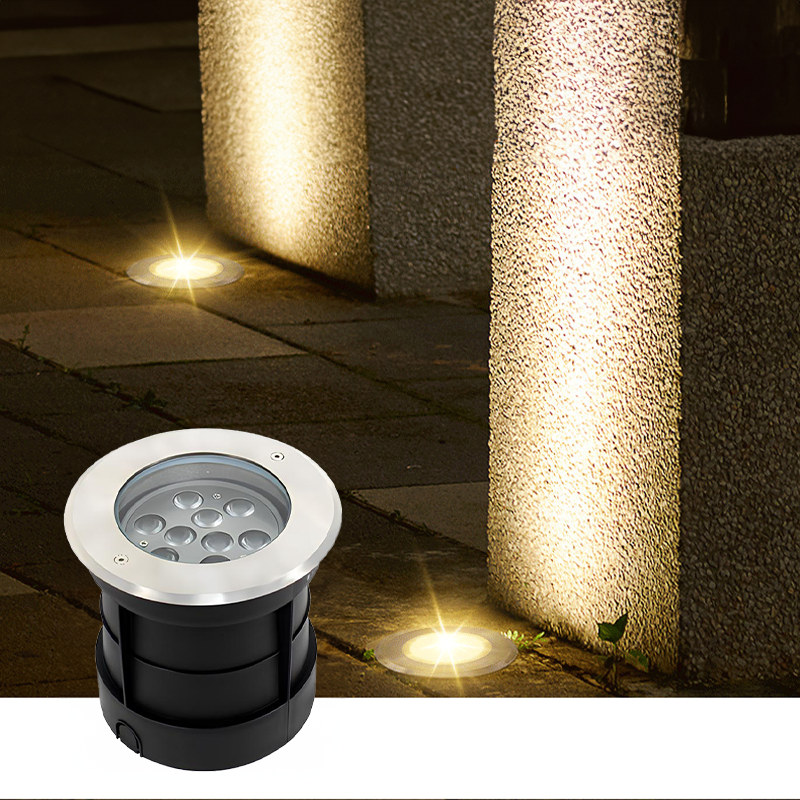 Đèn âm đất: Đảm nhiệm vị trí có mật độ di chuyển cao (lối đi, sàn gỗ, sân gạch). Lắp đặt âm phẳng để không gây vấp ngã và không phá vỡ mặt phẳng kiến trúc. Dùng để hắt cột kiến trúc, gốc cây lớn hoặc đánh dấu tuyến đường.