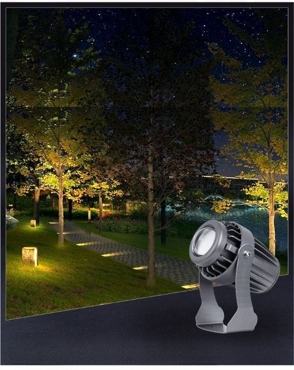 Đèn rọi cây: Đảm nhiệm các vị trí cần cường độ sáng cao hoặc chiếu từ trên xuống. Lắp cố định trên đế bê tông, tường bao hoặc treo trên các nhánh cây lớn.
