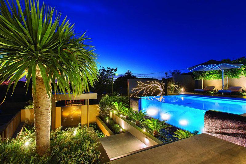 Khi phối hợp các loại đèn trong sân vườn nhà phố, nên giữ nguyên tắc: