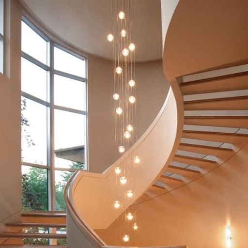 Đèn chùm, đèn thả dây với đặc trưng là các dải ánh sáng trải từ trên xuống. Thích hợp cho cầu thang dạng xoắn ốc, nơi có không gian rộng.
