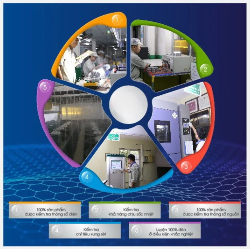 Đồng thời, hạn chế tối đa khả năng bị hỏng hóc, chập cháy khi hoạt động, giúp cho đèn có thể hoạt động lên tới 50.000 giờ tương đương với 25 năm sử dụng.