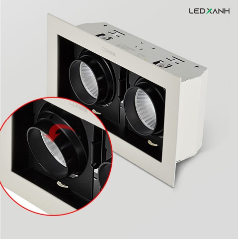 - Đèn LED âm trần chiếu rọi đôi: đèn sử dụng 2 đèn sử dugj chip COB giúp mang lại nguồn sáng tập chung và cường độ cao.