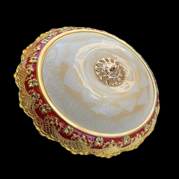 Đèn ốp trần đồng: Những chiếc đèn đồng được mạ thêm vàng 24K là sự lựa chọn hoàn hảo cho những căn biệt thự tân cổ hoặc cổ điển. Nó đem lại sự sang trọng, xa xỉ và đắt tiền cho không gian. Bên cạnh đó, đây cũng là loại chất liều bền bỉ, dễ chế tác những chi tiết cầu kỳ và cần độ tỉ mỉ cao. Tuy vậy chúng lại khá kén không gian lắp đặt.