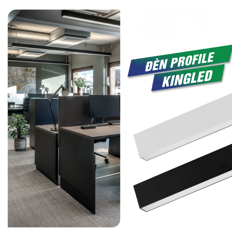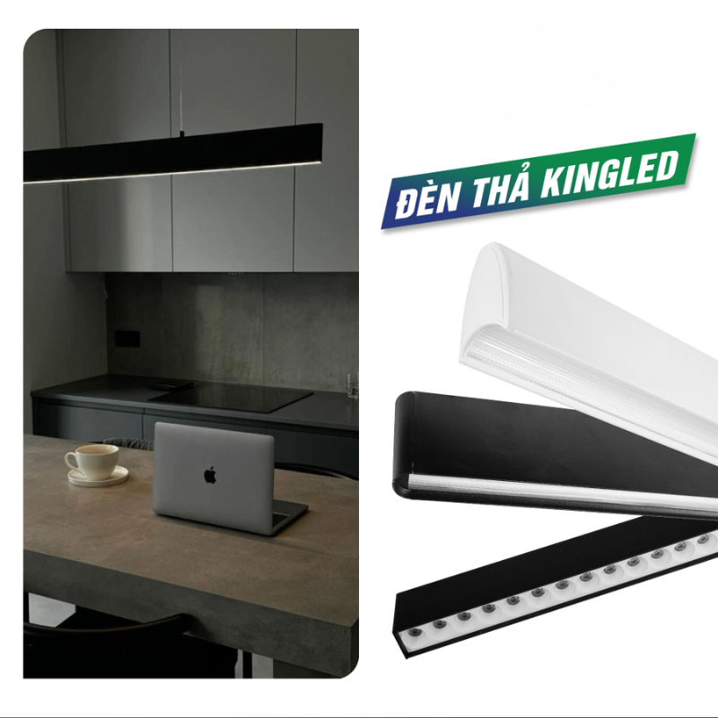 Đèn thả Kingled có nhiều dạng: profile vuông, dạng thanh thả trần, đèn chiếu bảng. Dễ lắp đặt với cáp treo, điều chỉnh độ cao linh hoạt.