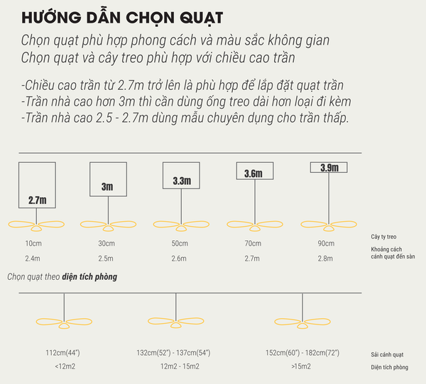 Lựa chọn chiếc quạt trần có hẹn giờ tắt cần phù hợp với không gian cần làm mát. Quạt trần hiện nay rất đa dạng về mẫu mã và kích thước. Bạn cần nắm rõ được diện tích và chiều cao trần nhà nơi cần lắp đặt để đưa ra lựa chọn phù hợp.