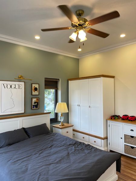 Với việc mang lại nguồn gió mát đều và dễ dịu, quạt trần phòng ngủ được lắp đặt ngay cả khi đã có điều hòa. Việc sử dụng quạt trần kết hợp điều hòa sẽ giúp làm mát nhanh, gió điều hòa phủ đều và rộng. Thông thường, sải cánh quạt trần phòng ngủ có độ dài từ 1m1 tới 1m6. Đây là khoảng kích thước phù hợp với diện tích phòng cũng như là độ mát của quạt.