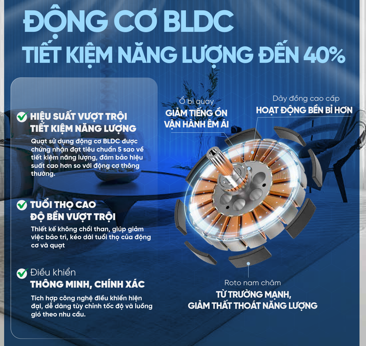 1.3. Động cơ BLDC - Tiết kiệm năng lượng đến 40%