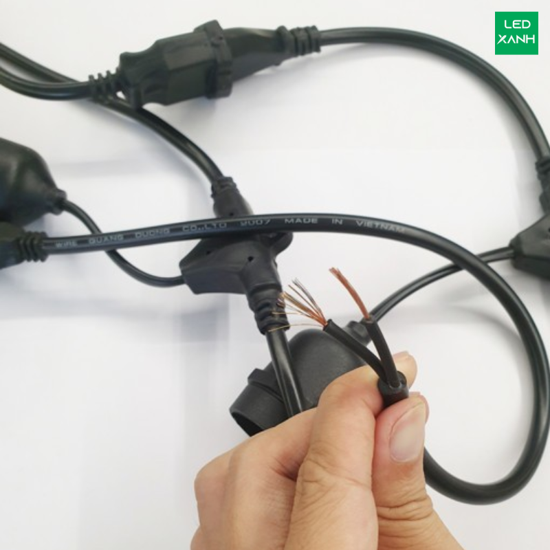 Dây trục chính: Dây điện được bọc bằng nhựa PVC chắc chắn chống nước cao. Hai đầu dây có đầu nối để nối các bộ dây với nhau.
