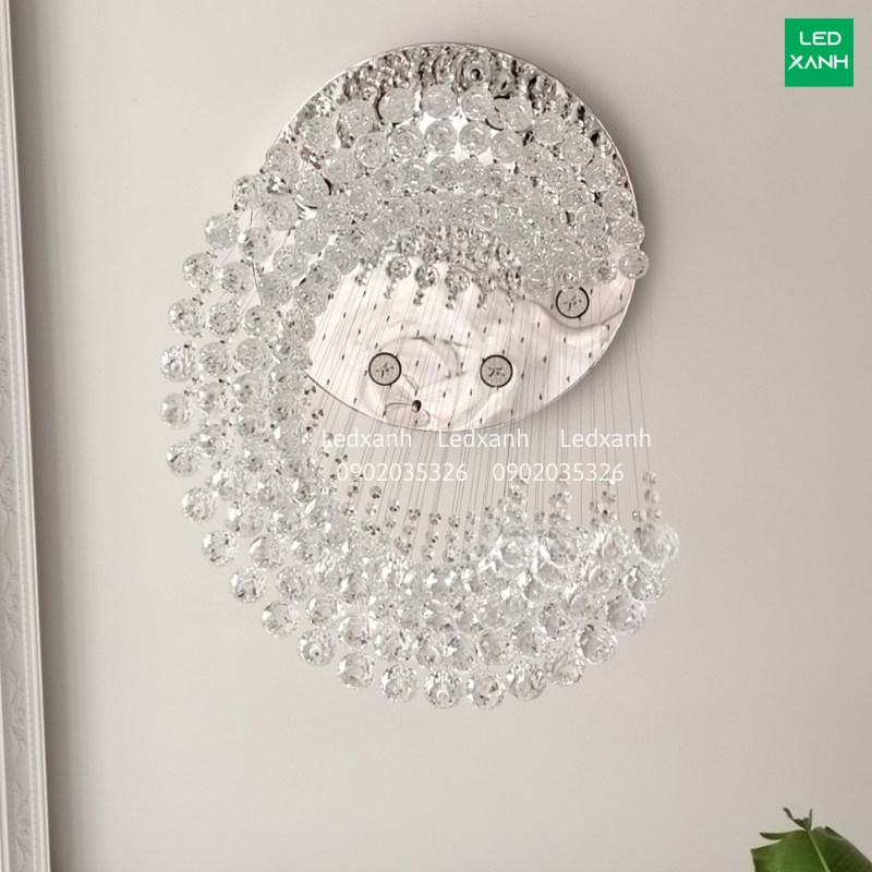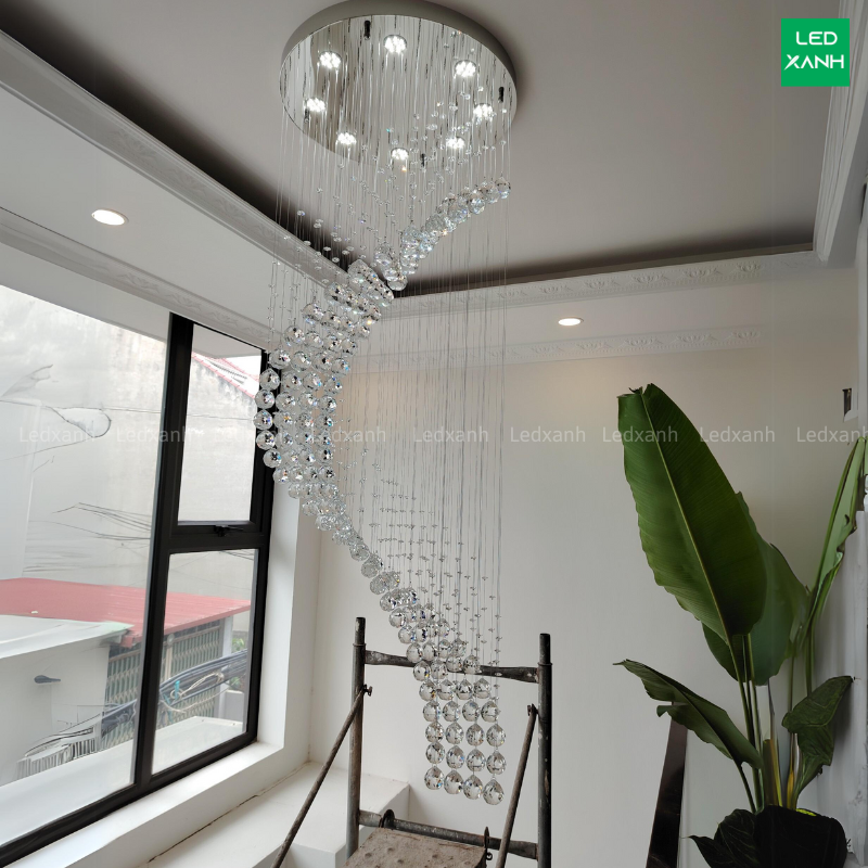Đèn được thiết kế dạng tròn với phi D550, độ dài pha lê khoảng 1500mm phù hợp với nhiều không gian. Hoàn thiện bởi các quả cầu pha lê trong suốt lấp lánh.