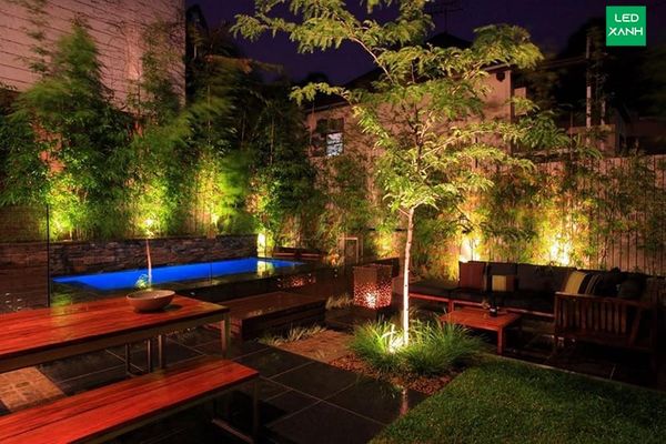 - Đèn âm đất COB thường được sử dụng chiếu sáng cảnh quan, sân vườn. Đèn thường được lắp vào chân tường, chiếu hắt lên hoặc lắp dưới các bụi cây thấp để chiếu vào gốc cây, tán lá, giúp cho không gian sân vườn rực rỡ về đêm.