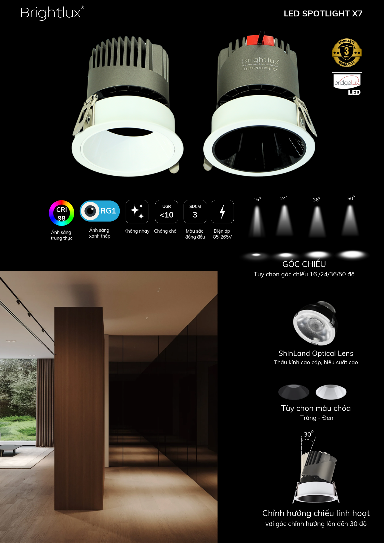2. Thông số kỹ thuật Đèn LED âm trần rọi X7 - BrightLux