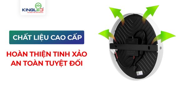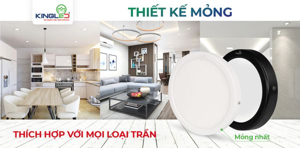 Thiết kế đèn tròn với bề mặt đèn Mica mờ tán quang chuyên dụng cho ánh sáng tỏa đều. Đèn ốp nổi Kingled sử dụng tản nhiệt bằng thân đèn nhưng vẫn đảm bảo đèn hoạt động ổn định, không bị nóng dù phải hoạt động liên tục.