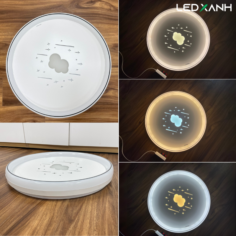 Đèn Led ốp trần SKY - Kosoom là dòng sản phẩm ốp trần với ánh sáng đổi màu được ra mắt vào nửa cuối năm 2023 nhằm mang đến không gian sống hiện đại với nguồn ánh sáng dịu nhẹ, lung linh, ấm áp, thay đổi linh động màu ánh sáng trắng, vàng, trung tính. Đặc biệt hơn, đèn được thiết kế độc đáo với hiệu ứng hình ngôi sao, mây, mặt trăng trên bầu trời, tạo điểm nhấn cho không gian thêm nổi bật. Đèn có giá thành cạnh tranh, hiệu suất cao đạt 75lm/w, tiết kiệm điện, bảo hành chính hãng 3 năm.
