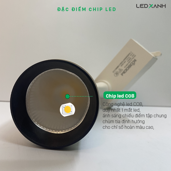 Được cấu tạo bởi chip led COB - tích hợp nhiều chip nhỏ để tạo thành chíp lớn duy nhất. Vì vậy ánh sáng có cường độ lớn hơn và độ sáng lớn hơn hẳn so với chíp bình thường