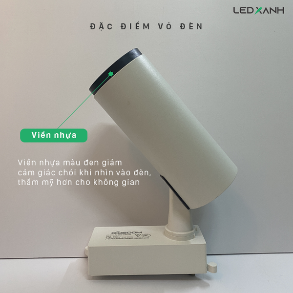 Điểm đặc biệt của mẫu đèn rọi ray Kosoom được phân phối bởi Led Xanh đó chính là viền nhựa ngoài. Hầu hết các sản phẩm trên thị trường sẽ chỉ có màu sắc viền trắng hoặc không viền. Tuy nhiên, viền nhựa màu đen được thiết kế ở đây nhằm giảm tối đa tình trạng chói mắt mà khách hàng thường gặp phải khi nhìn vào đèn.
