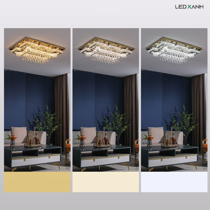 Vốn đã rất nổi bật nhưng khi được kết hợp cùng với ánh sáng đèn led, chiếc đèn lại càng trở nên thu hút hơn bao giờ hết. Tạo nên điểm nhấn ấn tượng cho không gian căn phòng. Ngoài ra, chiếc đèn cũng được ứng dụng công nghệ đèn led hiện đại với 3 gam màu sắc khác nhau từ vàng, trắng cho đến trung tính giúp cho người dùng có thể thoải mái chọn ra gam màu mà mình yêu thích.