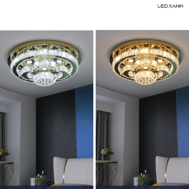 Với các tấm trần thạch cao hiện nay, phương án mà Led Xanh sẽ thi công đó là khoét lỗ trần thạch cao và bắt vít cố định trực tiếp đèn lên trần bê tông. Do các dòng sản phẩm đèn mâm pha lê thường rất nặng, do đó, chúng tôi tuyệt đối sẽ không bắt lên trần thạch cao để đảm bảo an toàn cho quý khách.