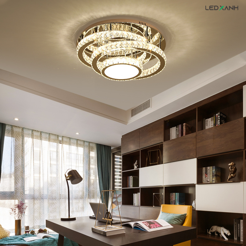 Mã đèn này có kích thước ( đường kính) là 600mm, chiều dài tính từ mâm đến điểm dài nhất của pha lê khoảng 20-25 cm, do đó với những không gian trần khiêm tốn, mẫu đèn này vẫn tạo ra khoảng cách an toàn với chiều cao của các thành viên trong gia đình. Bạn hoàn toàn yên tâm khi lắp đặt các mẫu đèn mâm pha lê tại LED Xanh.