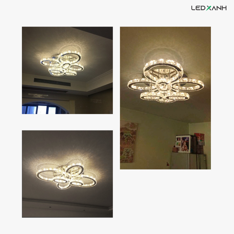 Mã đèn này có kích thước ( đường kính) là 600mm, chiều dài tính từ mâm đến điểm dài nhất của pha lê khoảng 20-25 cm, do đó với những không gian trần khiêm tốn, mẫu đèn này vẫn tạo ra khoảng cách an toàn với chiều cao của các thành viên trong gia đình. Bạn hoàn toàn yên tâm khi lắp đặt các mẫu đèn mâm pha lê tại LED Xanh.