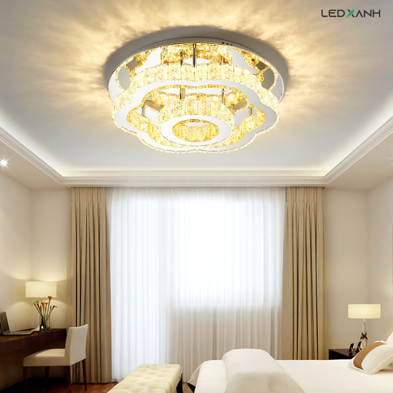 Mẫu đèn mâm pha lê M9232 là kiểu dáng được ưa chuộng tại các căn hộ có diện tích khoảng 20-25m2, trần nhà trong khoảng 2m3-2m5.