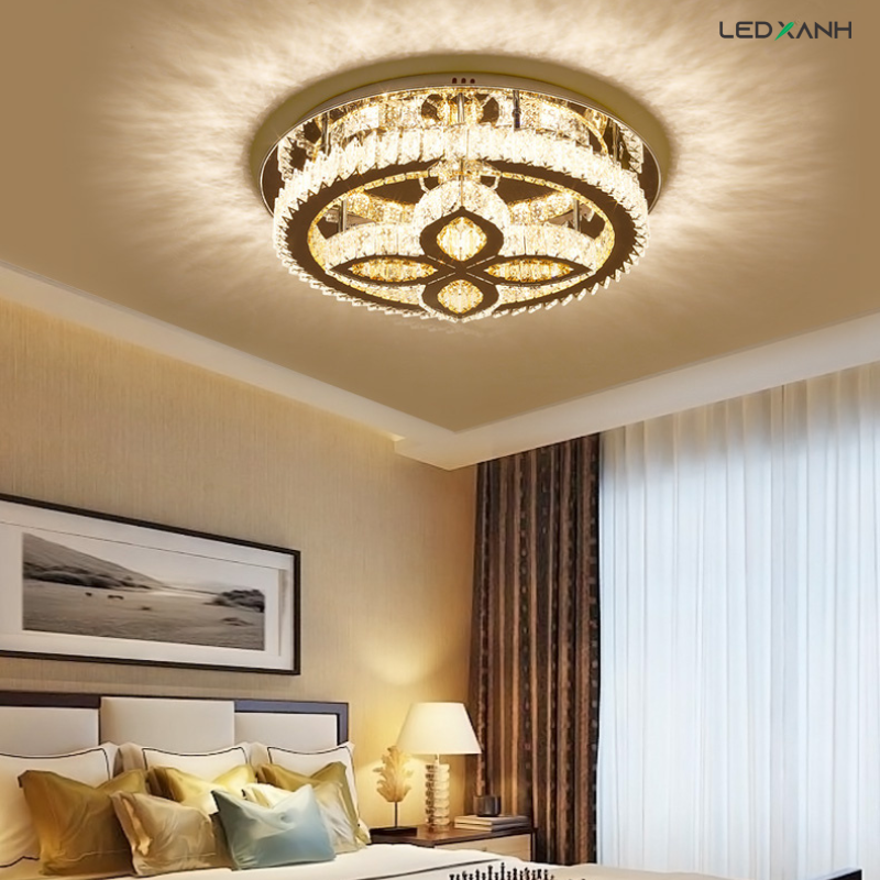 Mẫu đèn mâm pha lê M9234 là kiểu dáng được ưa chuộng tại các căn hộ có diện tích khoảng 20-25m2, trần nhà trong khoảng 2m3-2m5.