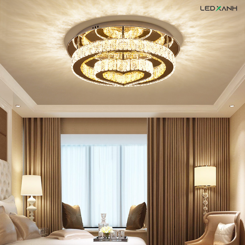Mẫu đèn mâm pha lê M9235 là kiểu dáng được ưa chuộng tại các căn hộ có diện tích khoảng 20-25m2, trần nhà trong khoảng 2m3-2m5.