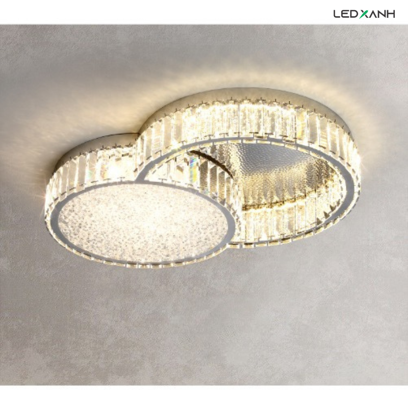 Mã đèn này có kích thước ( đường kính) là 600mm, chiều dài tính từ mâm đến điểm dài nhất của pha lê khoảng 20-25 cm, do đó với những không gian trần khiêm tốn, mẫu đèn này vẫn tạo ra khoảng cách an toàn với chiều cao của các thành viên trong gia đình. Bạn hoàn toàn yên tâm khi lắp đặt các mẫu đèn mâm pha lê tại LED Xanh.