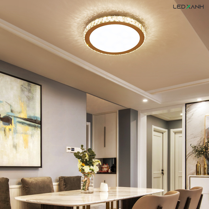 Mã đèn này có kích thước ( đường kính) là 600mm, chiều dài tính từ mâm đến điểm dài nhất của pha lê khoảng 20-25 cm, do đó với những không gian trần khiêm tốn, mẫu đèn này vẫn tạo ra khoảng cách an toàn với chiều cao của các thành viên trong gia đình. Bạn hoàn toàn yên tâm khi lắp đặt các mẫu đèn mâm pha lê tại LED Xanh.