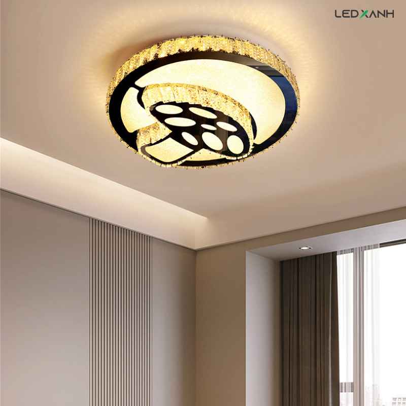 Mã đèn này có kích thước ( đường kính) là 600mm, chiều dài tính từ mâm đến điểm dài nhất của pha lê khoảng 20-25 cm, do đó với những không gian trần khiêm tốn, mẫu đèn này vẫn tạo ra khoảng cách an toàn với chiều cao của các thành viên trong gia đình. Bạn hoàn toàn yên tâm khi lắp đặt các mẫu đèn mâm pha lê tại LED Xanh.