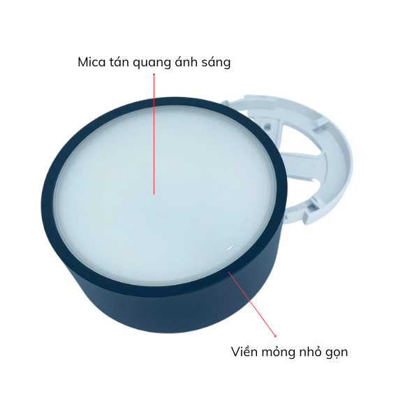 Bề mặt của đèn được sử dụng tấm Mica tán quang màu trắng đục, có thiết kế chắc chắn, không bị giòn, khả năng chịu lực tốt giúp bảo vệ các mắt led. Đồng thời, tấm mica này giúp tán đều mà mịn ánh sáng, phân bổ ánh sáng đồng đều khắp không gian mà nó được lắp đặt.