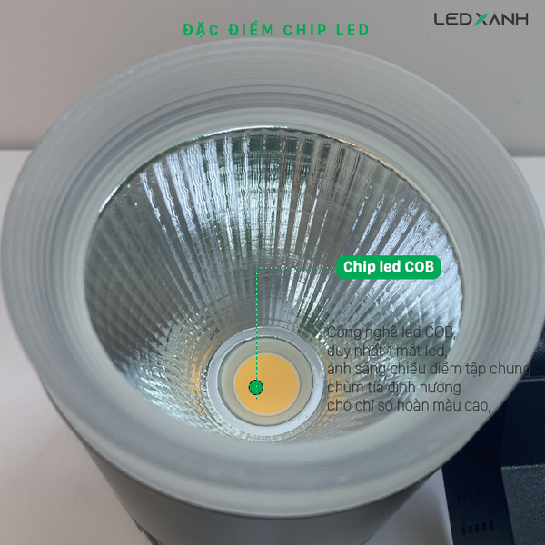 - Chip led: COB với công suất cao, tập trung tại 1 điểm và tạo thành góc chiếu điểm rọi nhỏ,