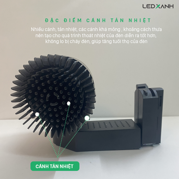 Điểm đặc biệt của mẫu đèn rọi này là bộ phận rãnh tản nhiệt của đèn, dày, khoảng cách nhỏ, nhiều cánh, các cánh khá mỏng nên tạo cho quá trình thoát nhiệt của đèn diễn ra tốt hơn, không lo bị cháy đèn, giúp tăng tuổi thọ của đèn