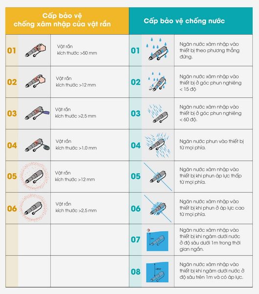2.1 Khả năng chống bụi, nước xâm nhập
