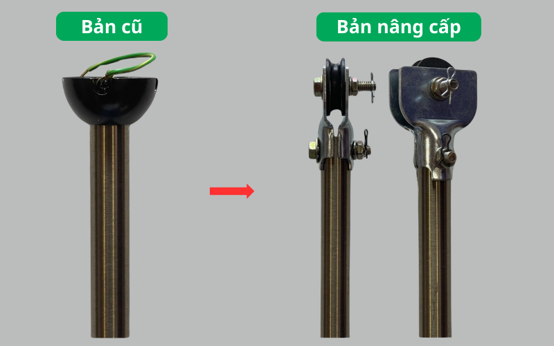 - Móc treo: Thay đổi từ mặt bích (mặt đế) sang móc treo cao su, phù hợp với nhiều thiết kế trần nhà hiện nay
