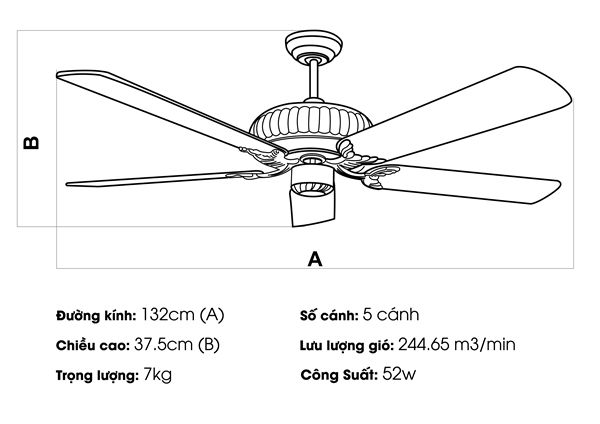 - Sải cánh quạt trần có kích thước bao nhiêu?