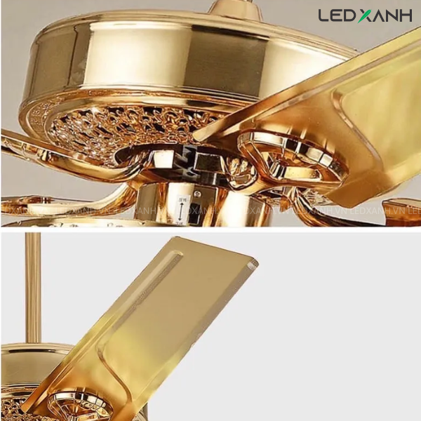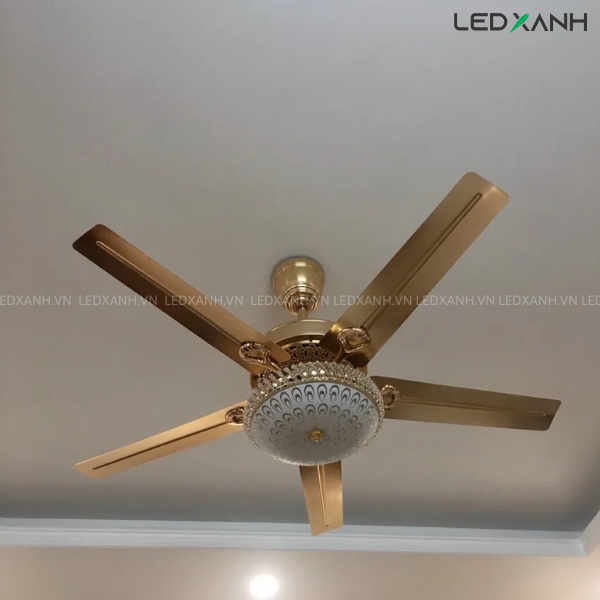 Quạt trần đèn 5 cánh sắt DQ-CT-107 được thiết kế theo phong cách tân cổ điển được thiết kế khá nhỏ gọn với chất liệu là hợp kim và thép không gỉ, bên ngoài được phủ một lớp sơn vàng đồng mang lại vẻ đẹp sang trọng, quý phái cho không gian, đồng thời bảo vệ quạt trần không bị oxi hóa khi sử dụng. Động cơ DC tiết kiệm điện năng, giúp cho quạt trần vận hành êm ái, không gây tiếng ồn với 6 tốc độ gió khác nhau.