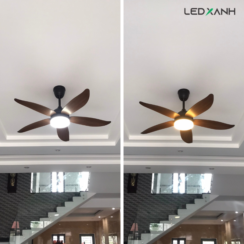 Màu sắc tinh tế: Sự kết hợp giữa màu đen lì của thân đèn cùng với màu nâu gỗ từ cánh quạt, dễ dàng kết hợp với các đồ nội thất trong phòng làm toát lên sự sang trọng, đẳng cấp cho từng không gian mà nó lắp đặt.