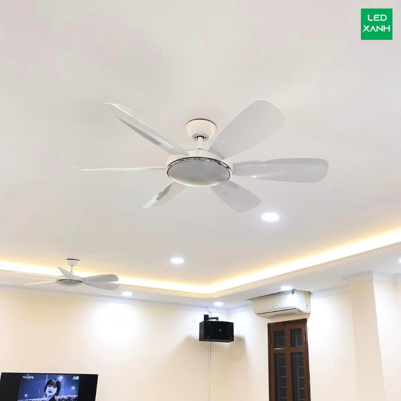 Thiết kế điệu đà tựa đóa cúc trắng nhẹ nhàng. Mẫu quạt được rất nhiều chị em yêu thích sử dụng cho phòng khách, phòng ngủ, bàn ăn.