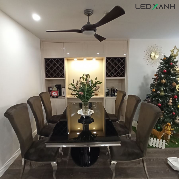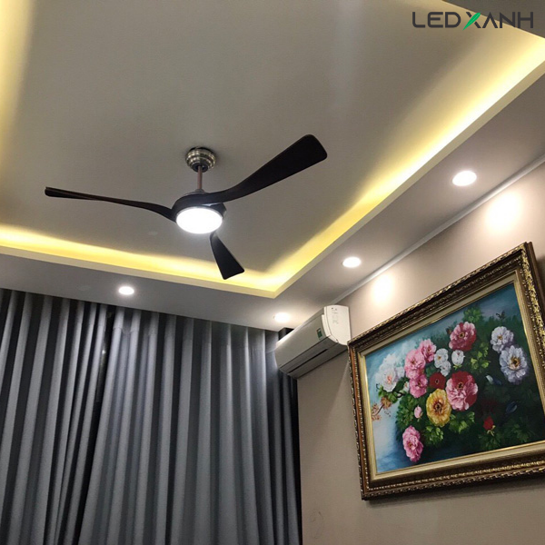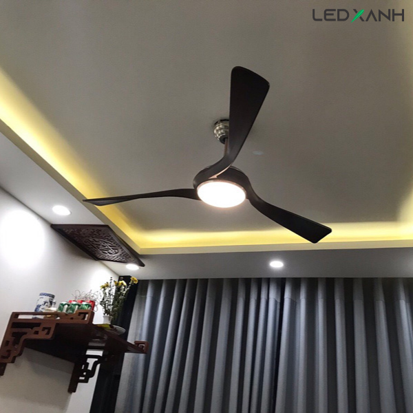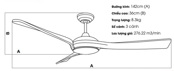 - Quạt có độ sải cánh 1m42 phù hợp với không gian có diện tích từ 15-25m2. Khoảng cách từ cánh quạt đến trần là 36cm, thích hợp với căn phòng có chiều cao trần từ 3m trở lên.