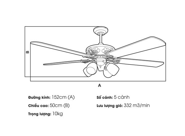 - Sải cánh quạt trần có kích thước bao nhiêu?