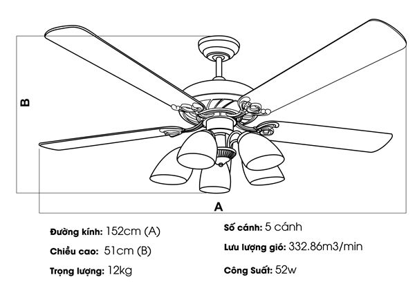 - Sải cánh quạt trần có kích thước bao nhiêu?