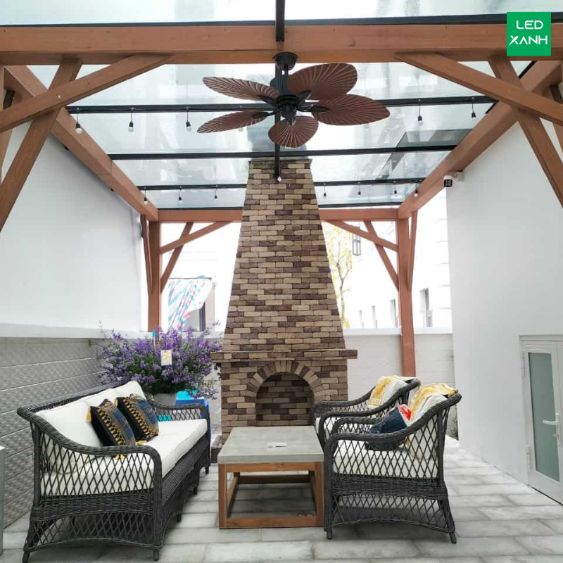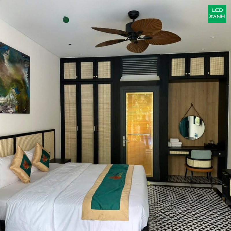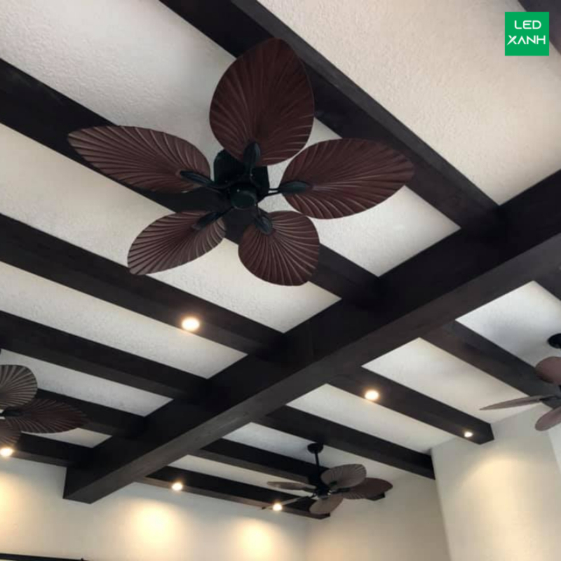 Mẫu quạt phong cách nhiệt đới với thiết kế cánh lá độc đáo, gió tốt, được sử dụng tại khách sạn Movenpick Phan Thiết, hệ thống NovaWorld và nhiều resort khác.